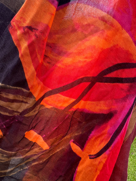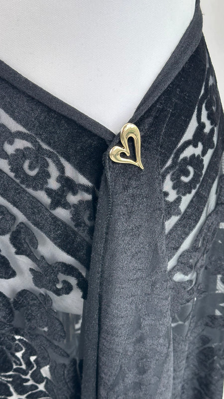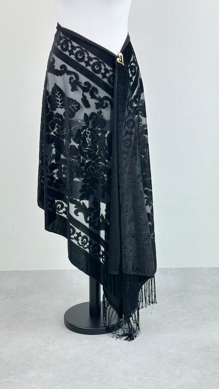 Zwarte doorschijnende sjaal met fluwelen bloemmotief