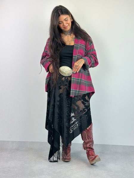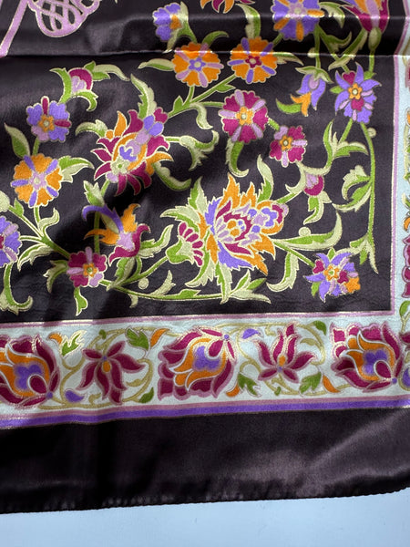 Zwarte doorschijnende sjaal met fluwelen bloemmotief