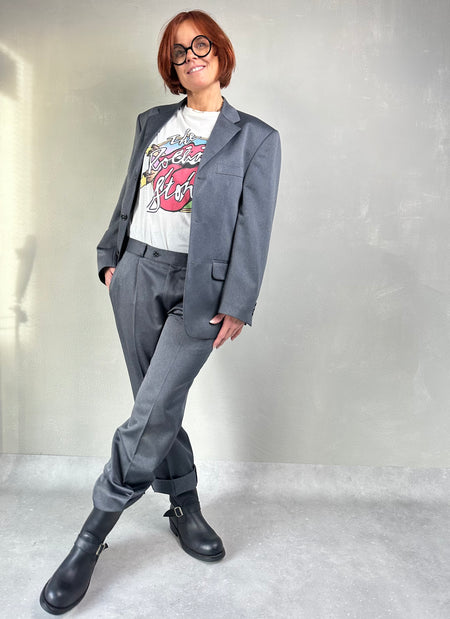 Staalgrijs glans kostuum
