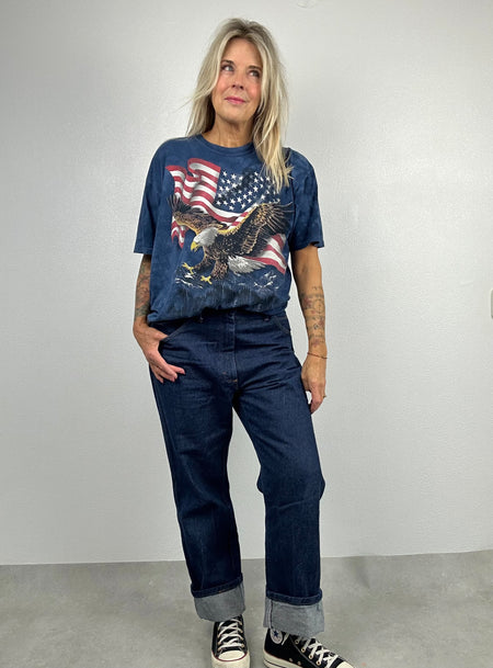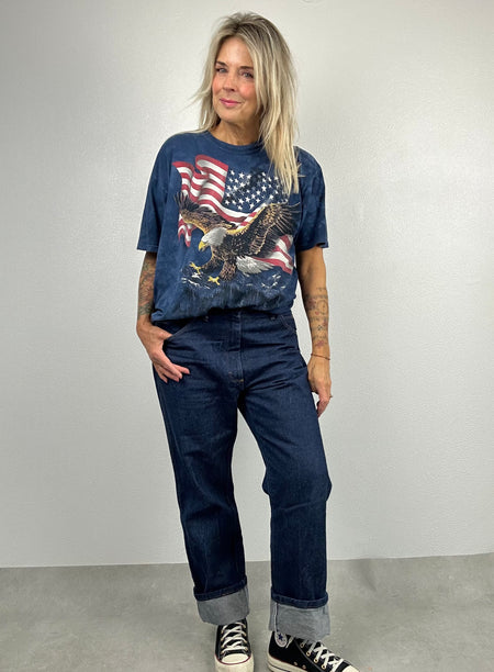 Blauw oversized Tee met roofvogel