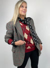 Grijs oversized colbert met zwart/rode ruit.