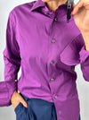 Met deze paarse blouse geef je de bermuda, colorblock sokken en hakken een vrolijke twist, de bermuda shop je bij ons de rest is models owned.