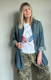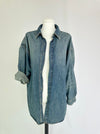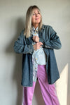 Deze oversized jeans blouse kan je prima als jas over je outfit combineren. Pssst de knoopjes voor ontbreken wel.