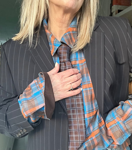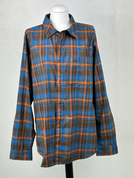 Geruite bruin blauw oranje blouse