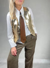 Weg met het stoffige imago van de ribbroek! Combineer ’m, zoals hier, met een glittergilet, een blouse met grote puntkraag en een stropdas. Zo ben je helemaal klaar voor een verrassend toffe look. Al deze unieke kledingstukken zijn verkrijgbaar in de webshop.