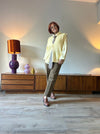 Combineer ’m met een butterly yellow blouse en vest, en maak de look helemaal af met een extra lang gestrikte stropdas, al deze unieke items shop je bij ons.Â