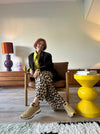 Deze wijde, soepelvallende panterprintbroek met strikkoord en elastische taille is pure vintage fun.