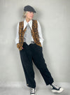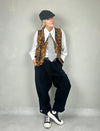 Weg met het stoffige imago van de ribbroek! Combineer ’m, zoals hier, met een tijgerprint gilet, een blouse met grote puntkraag en een stropdas. Al deze unieke kledingstukken zijn verkrijgbaar in de webshop., deze unieke kledingstukken zijn verkrijgbaar in de webshop.
