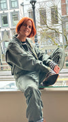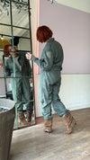 Vliegeniersoverall met ritsdetails mooi sluitend en juist leuk met een oversized blouse of blazer erover. Beide verkrijgbaar in de shop