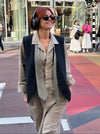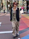 Wie zegt dat werkkleding niet samen gaat met glam. Deze jumpsuit doet het allebei. Combineer stoer met een paar goeie hakken en snoer je taille met een toffe stropdas (verkrijgbaar in de webshop). Jij bepaalt de regels en je outfit laat het zien.