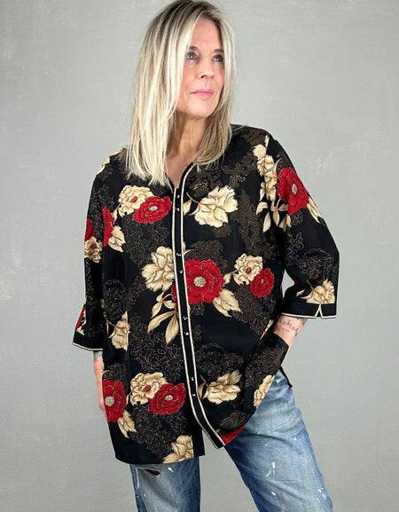 Zwarte oversized blouse met driekwart mouwen