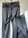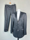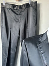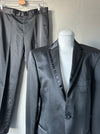 Dit donker grijs/groenig kostuum van Lagerfeld heeft een prachtige satijnachtige glans stof en verdient gewoon een nieuw leven. En dat is helemaal niet moeilijk, je kunt het eindeloos combineren. Er is genoeg te vinden in onze shop (of in je eigen kast 😉).