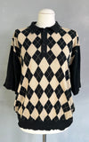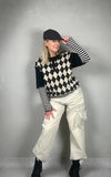 Dit katoenen oversized poloshirt in zwart-beige argyle ruit kan je leuk combineren met een ander printje en een oversized broek voor een speelse twist. De meeste kledingstukken uit onze outfits shop je in de webshop, of duik even je eigen kast in en mix ’n match erop los.