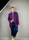 Dit opsvallende oversized colbert in een prachtige kleur paars valt mooi slank zodat het vrouwelijk blijft. Voor een leuke twist stijl het af met een rockband shirt of (destroyed) jeans. Staat: Als nieuw!