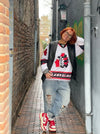 Met dit vintage ijshockeyshirt ga je automatisch voor goud als je ze draagt in een toffe outfit. De meeste kledingstukken uit onze outfits shop je in de webshop. Of duik even je eigen kast in en mix ’n match erop los.