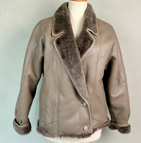 Taupe leren reworked jas