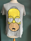 Grijs t-shirt met afdruk van The Simpsons. De afdruk heeft een destoyed effect.