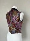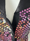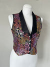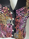 Kort zwart gekleurd pailletten gilet getailleerd. Sluit met klittenband. Door het showbizz verleden missen er af en toe wat pailletjes.