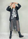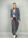 Deze transparante harembroek met elastieke band beweegt lekker met je mee en zorgt voor een beetje meer glans in je leven. Je kunt er eindeloos mee combineren. Leuk met smokingjasje, blazer of en jeans gilet. Alles verkrijgbaar in de shop.