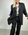 Dit smoking pak van het merk Oger kan je op zoveel verschillende manieren stijlen. Met een klassieke blouse met grote kraag maar ook stoer met een vintage t-shirt en statement belt. Deze unieke items vind je ook in onze shop.