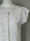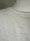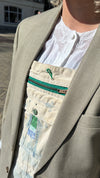 Een echt vintage pareltje, dit linnen bloesje met prachtige borduursels en kapmouwtjes. Perfect om te combineren met zowel basics als opvallende pieces. De meeste kledingstukken uit onze outfits shop je in de webshop. Of duik even je eigen kast in en mix ’n match erop los. Er is geen label aanwezig met samenstelling maar wij vermoeden een mix van linnen katoen.